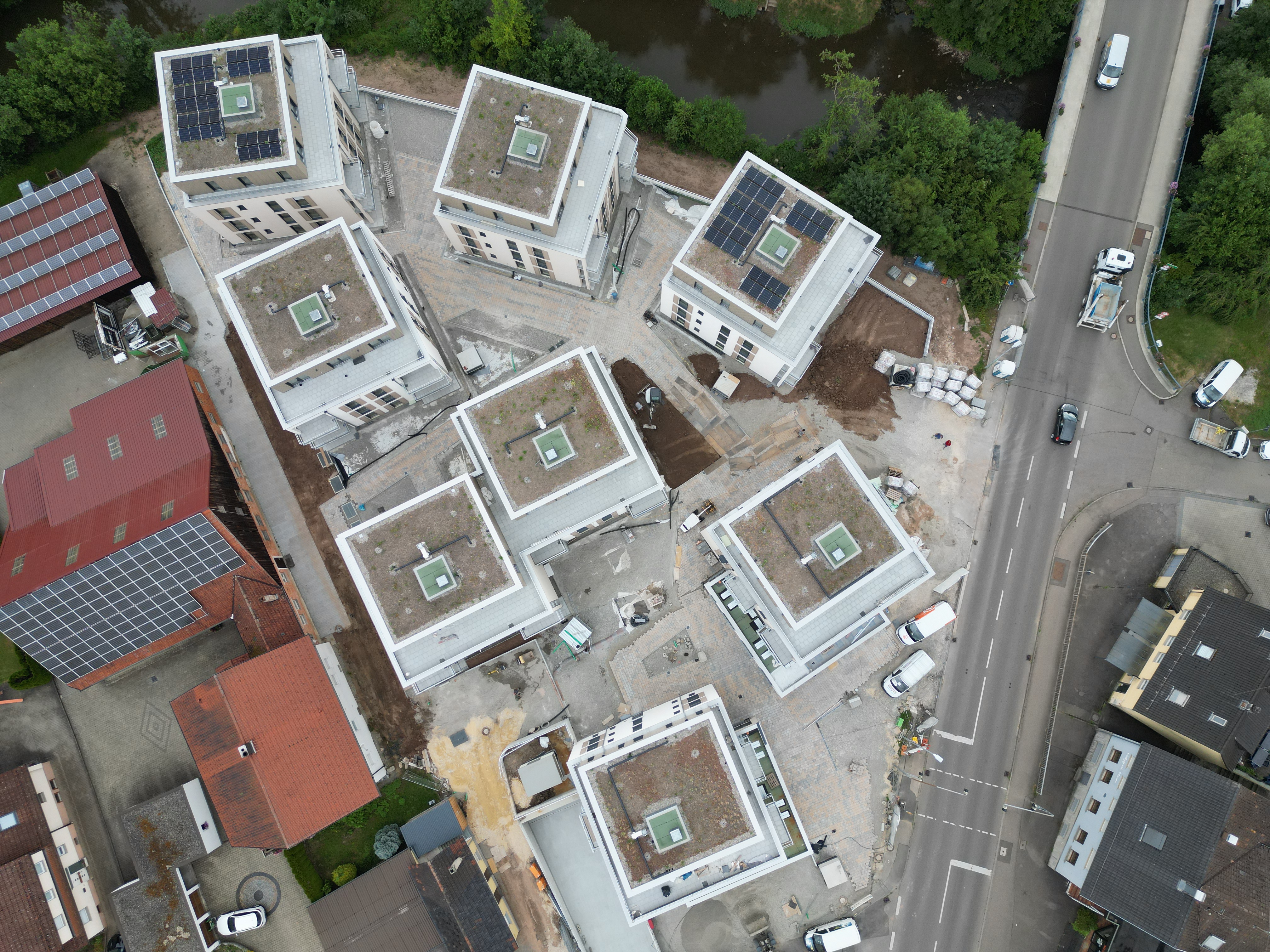 Luftaufnahme Energiezentrum – erneuerbare Energien im Quartier